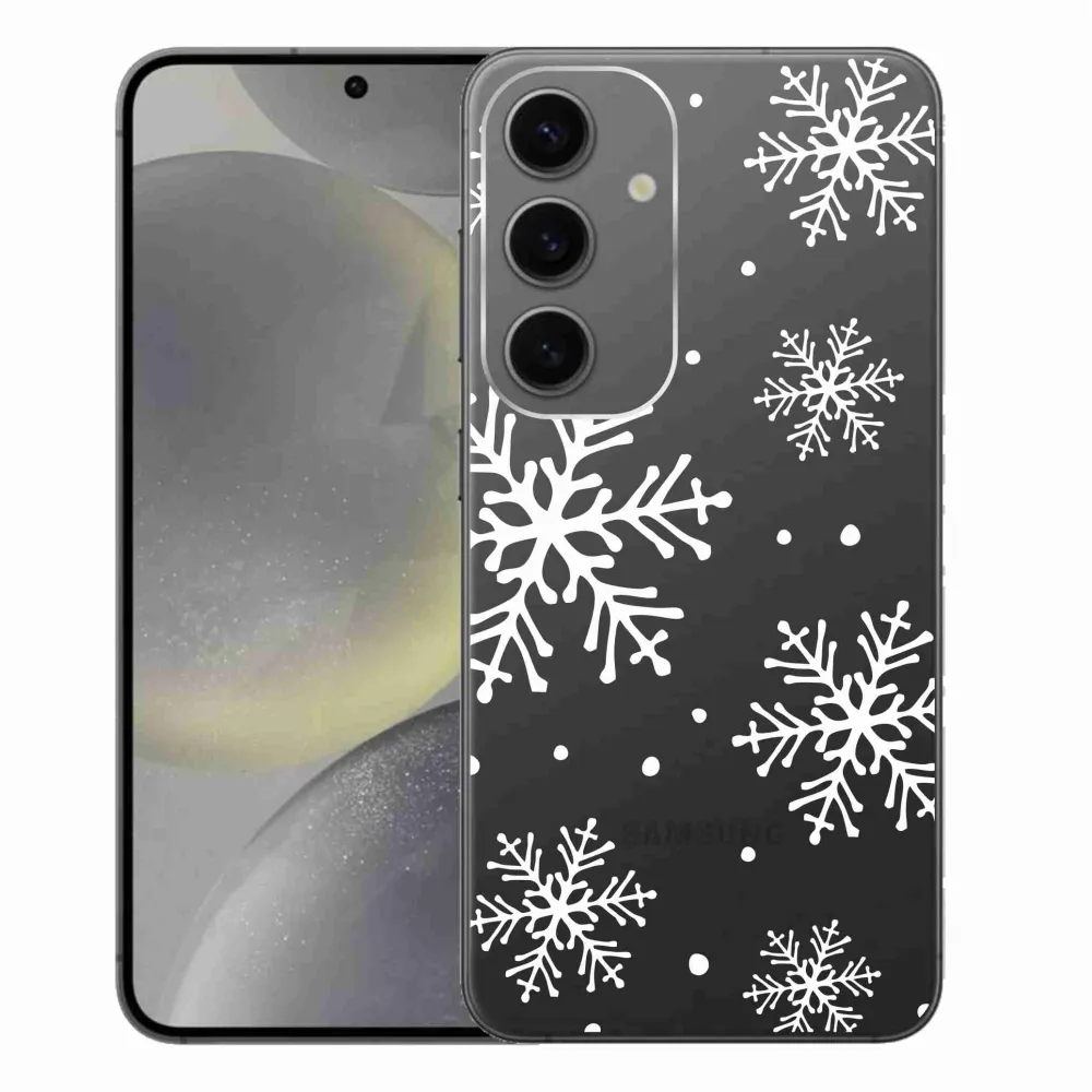 Rugalmas zselés tok mmCase képpel Samsung Galaxy S24+ - fehér hópelyhek átlátszó háttéren
