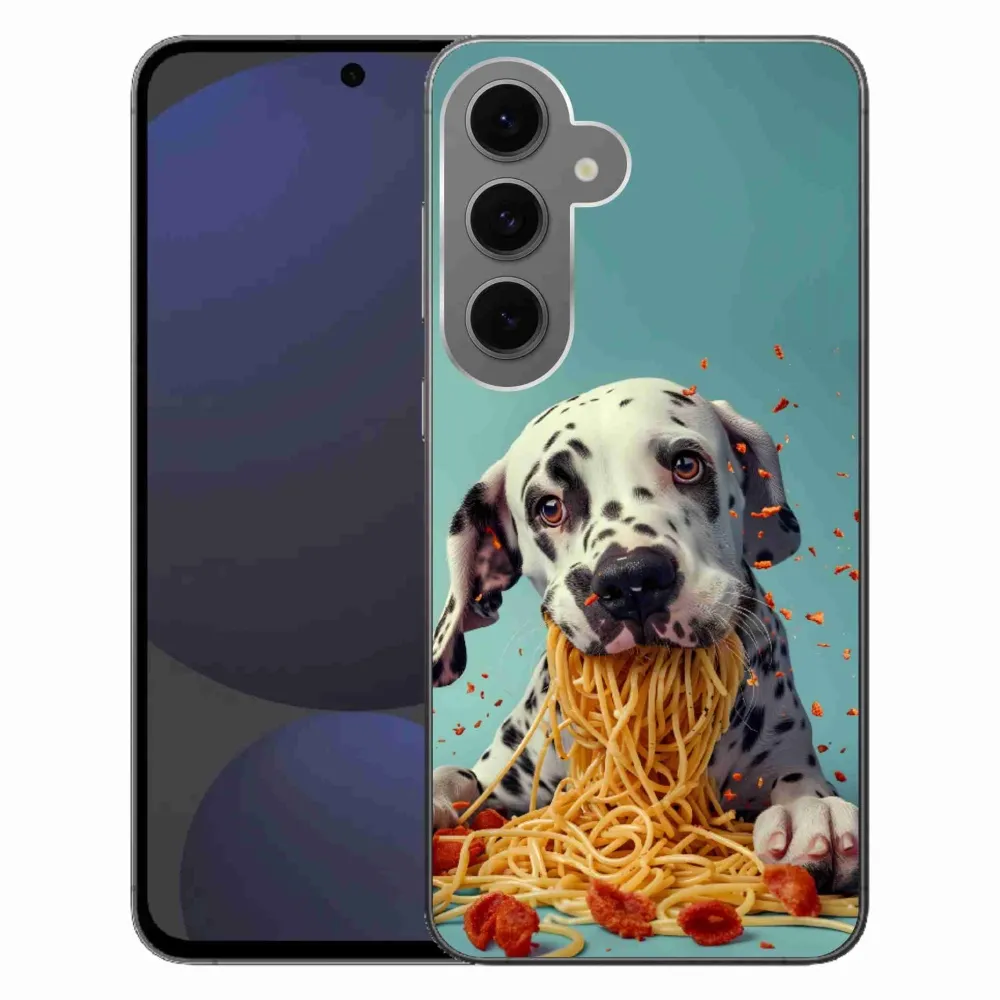 Rugalmas kesztyű tok mmCase a Samsung Galaxy S24FE képével - dalmatin és spagetti