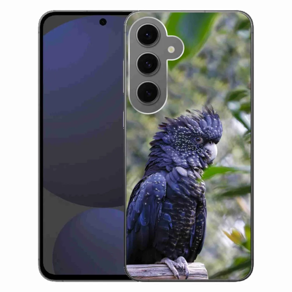 Rugalmas kesztyűhuzat mmCase a Samsung Galaxy S24FE képével - papagáj kakadu fekete