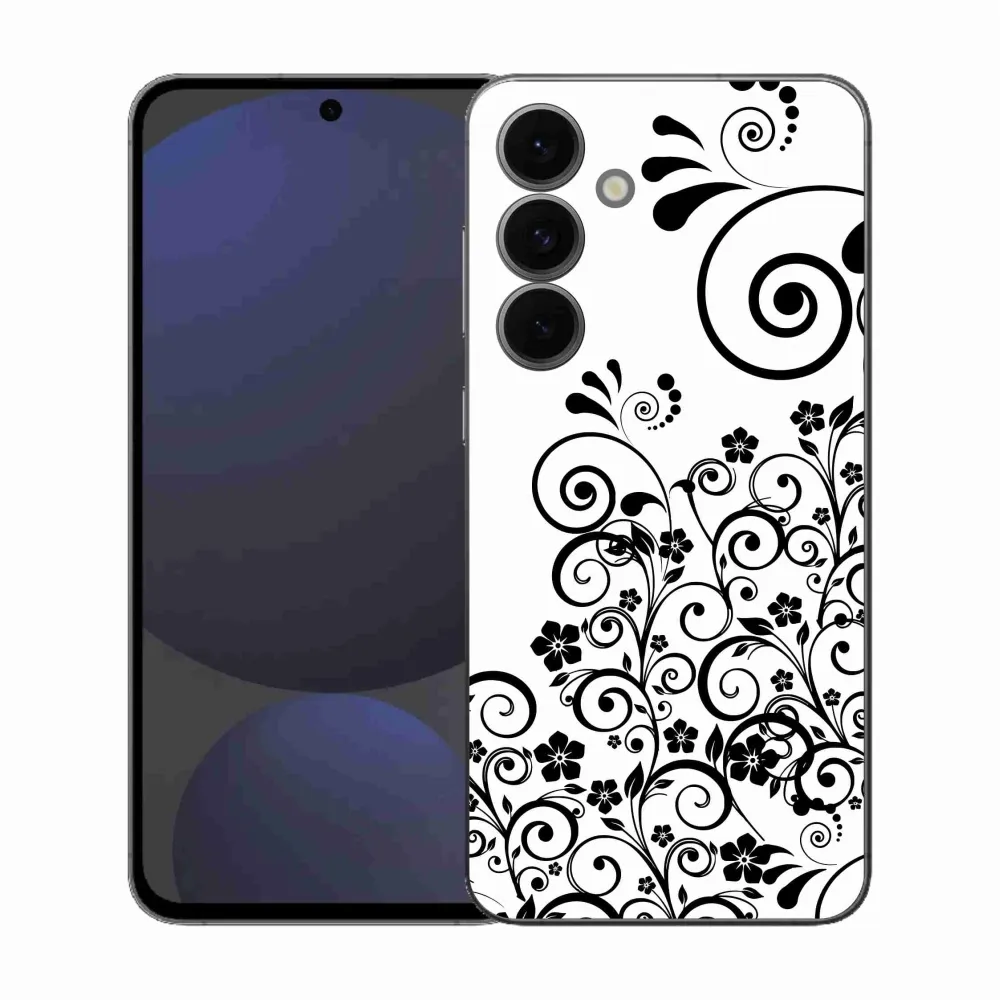 Rugalmas gél tok mmCase kép Samsung Galaxy S25 FE - fekete és fehér virágmintás tok - fekete és fehér virágminták