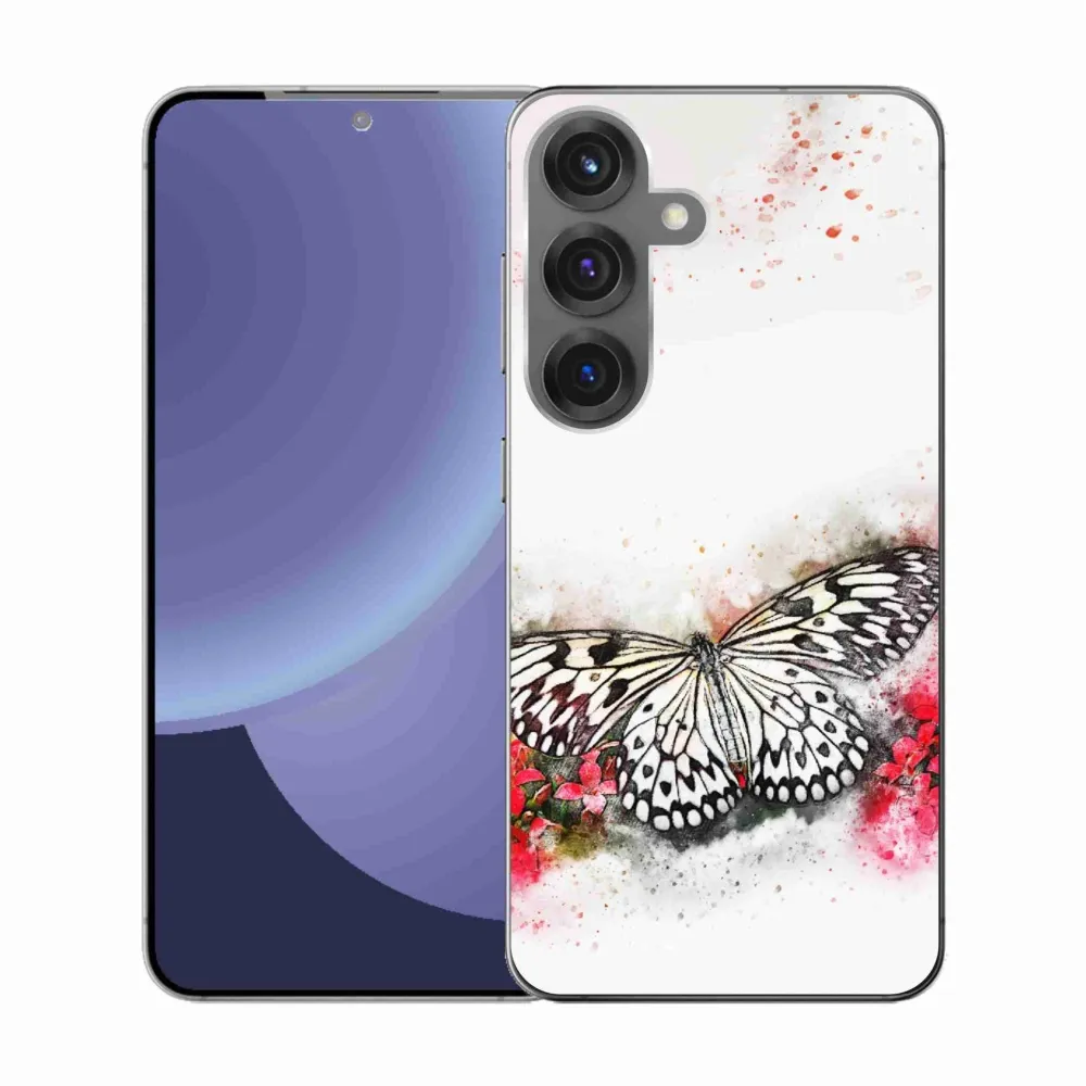 Rugalmas zselés tok mmCase kép Samsung Galaxy S25 - fekete-fehér pillangó