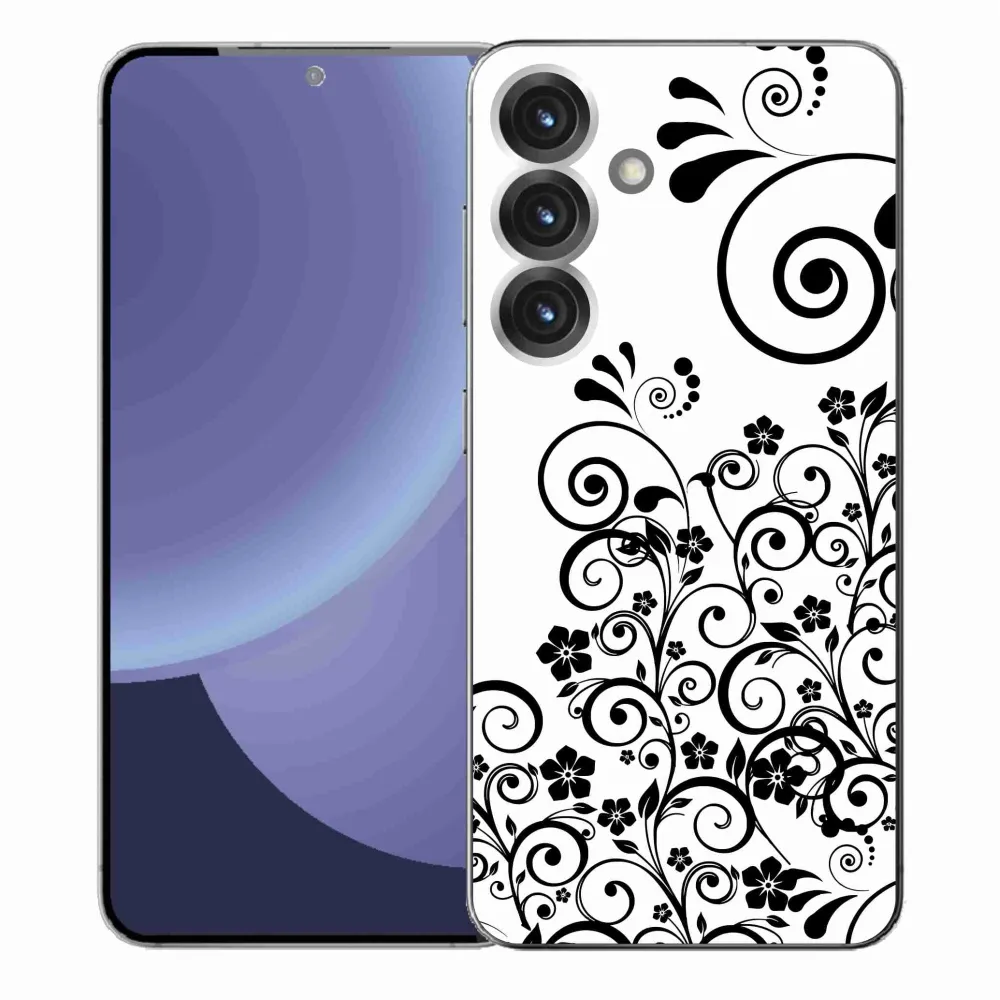 Rugalmas gél tok mmCase kép Samsung Galaxy S25+ - fekete és fehér virágmintás tok - fekete és fehér virágmintákkal