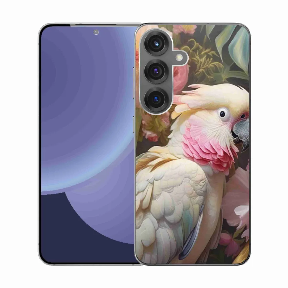 Rugalmas gél tok mmCase kép Samsung Galaxy S25 - papagáj kakadu rózsaszín 2
