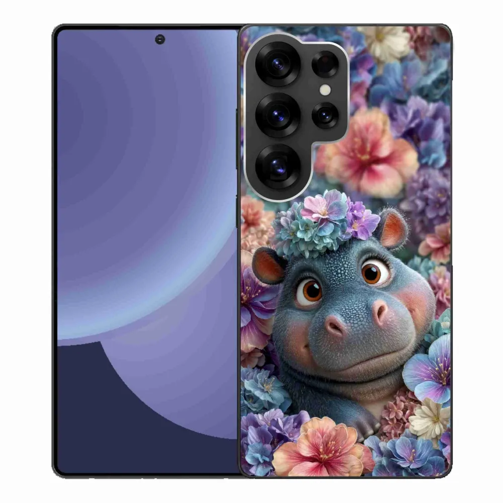 Zselés borítás mmCase Samsung Galaxy S25 Ultra készülékhez - víziló virágokban