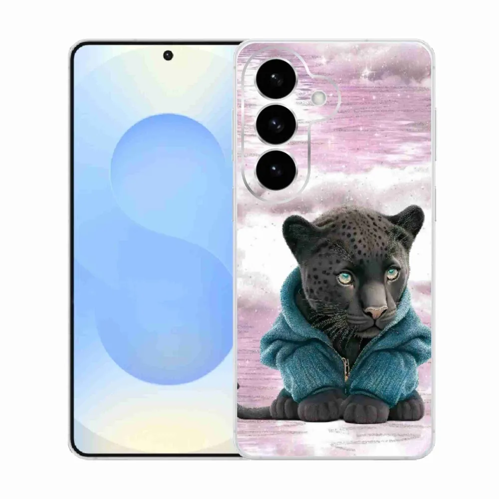 Rugalmas zselés tok mmCase kép Samsung Galaxy S26 - fekete párduc pulóverben