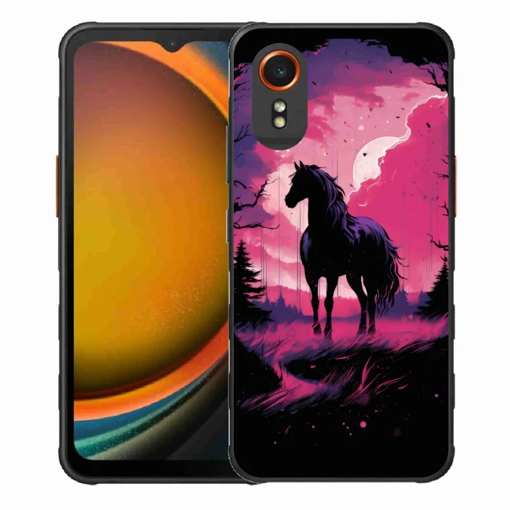 Rugalmas zselés borító mmCase kép Samsung Galaxy Xcover 7 - fekete rajzfilm ló 1