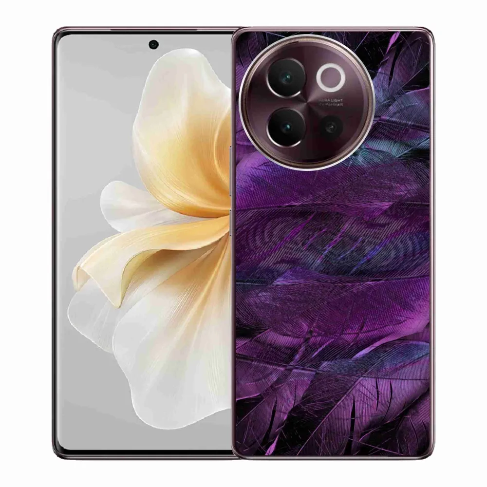 Rugalmas gél tok mmCase a Vivo V40 Lite 5G képével - lila tollakkal