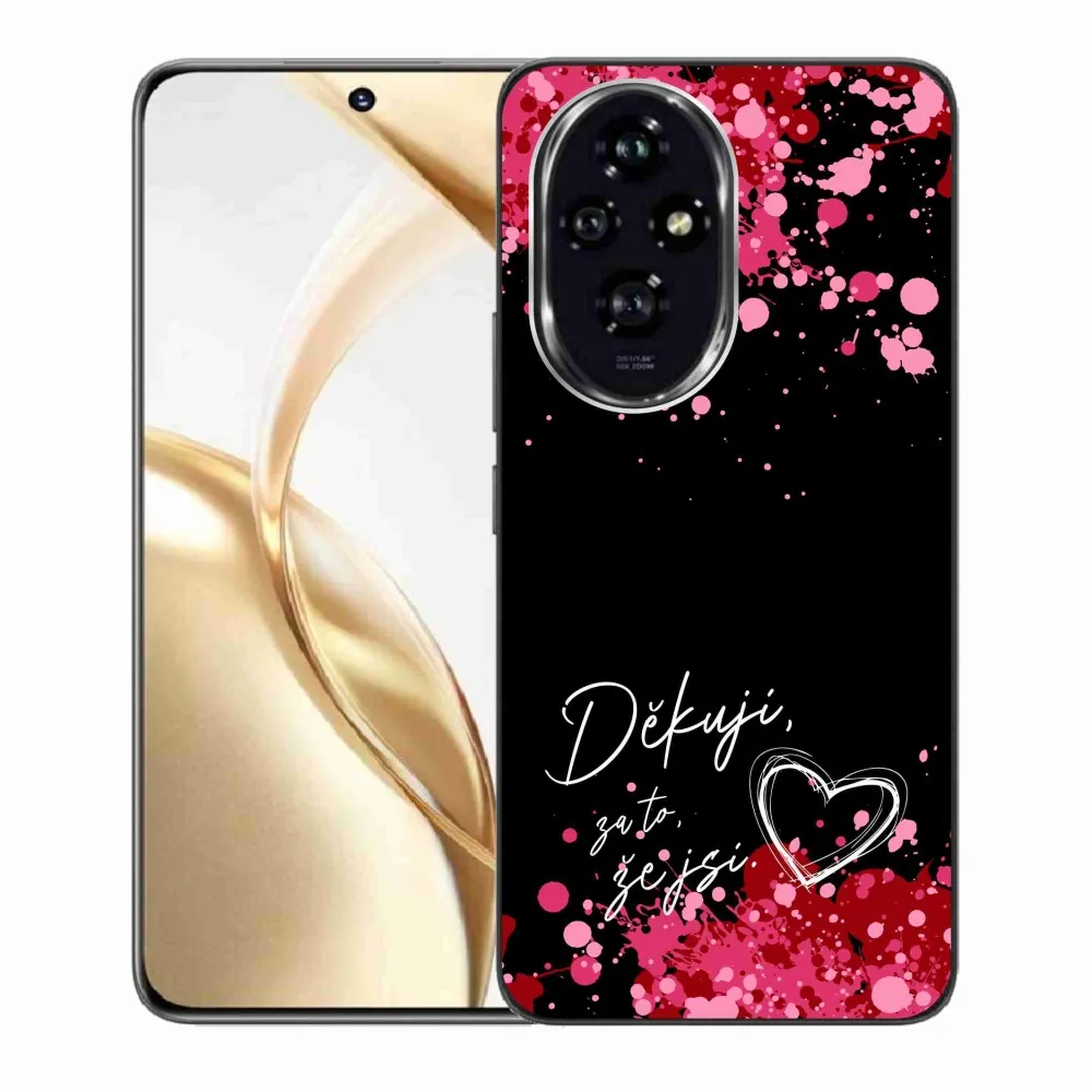 Rugalmas zselés tok mmCase a Honor 200 5G képével - szöveg szerelemben 2 fekete háttérrel