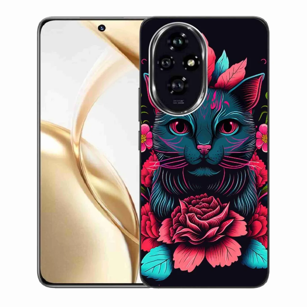 Rugalmas zselés tok mmCase a Honor 200 5G képével - virágok és macska