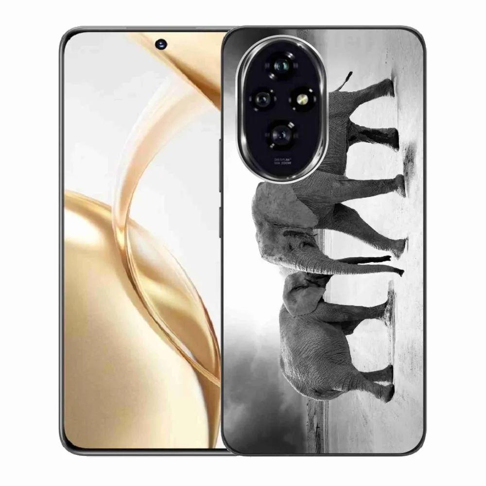 Rugalmas zselés tok mmCase a Honor 200 5G képével - fekete és fehér elefántok