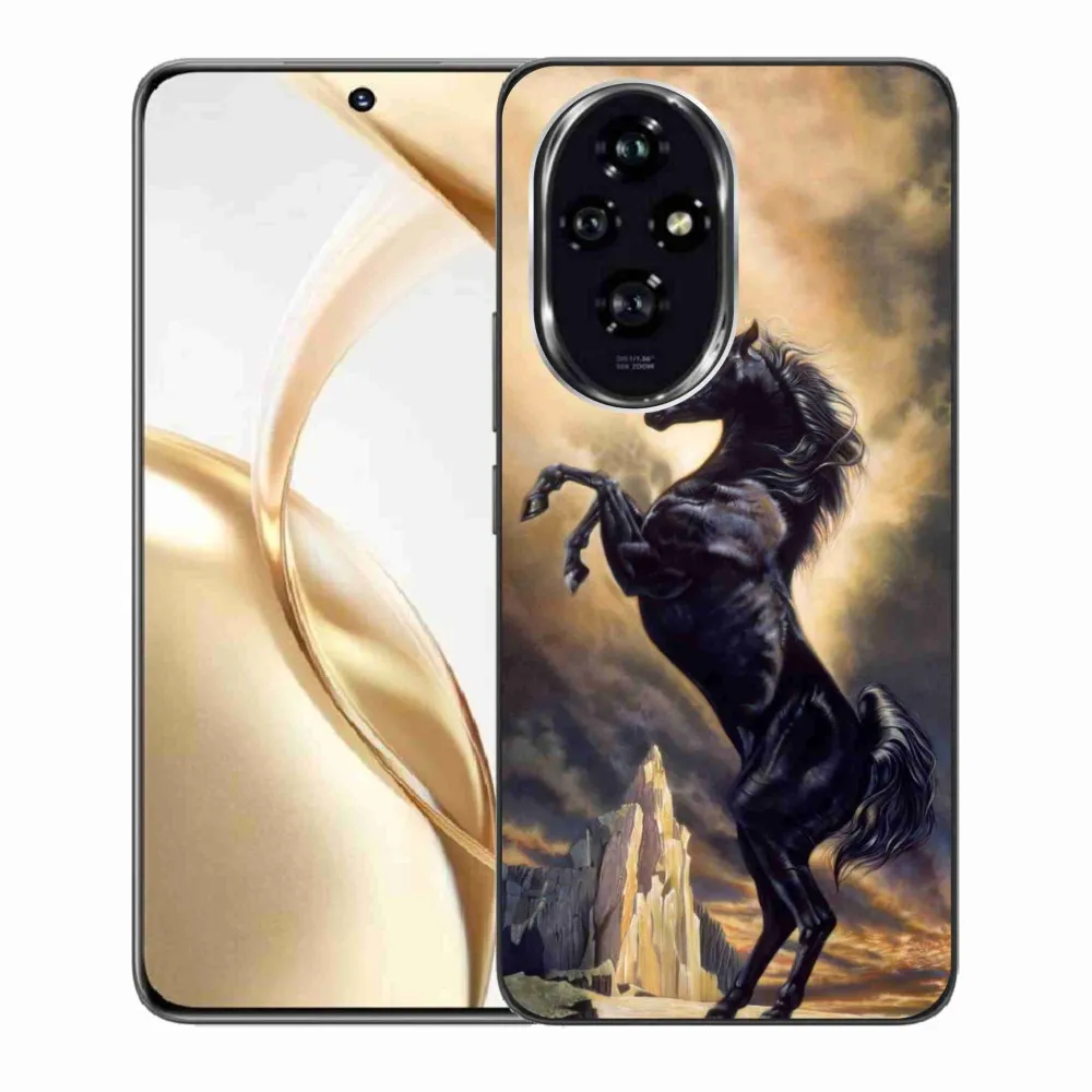 Zselés borító mmCase a Honor 200 5G számára - fekete rajzfilm ló