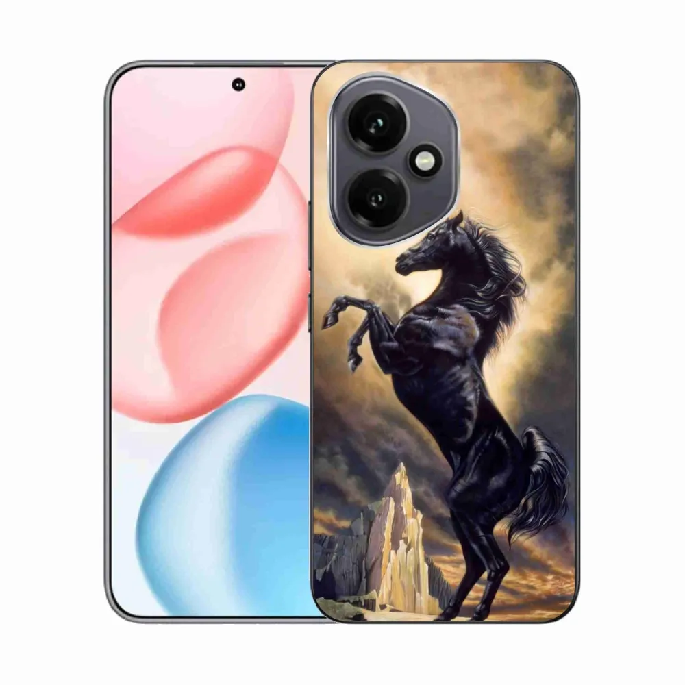 Rugalmas zselés tok mmCase képpel Honor 400-hoz - fekete rajzfilm ló