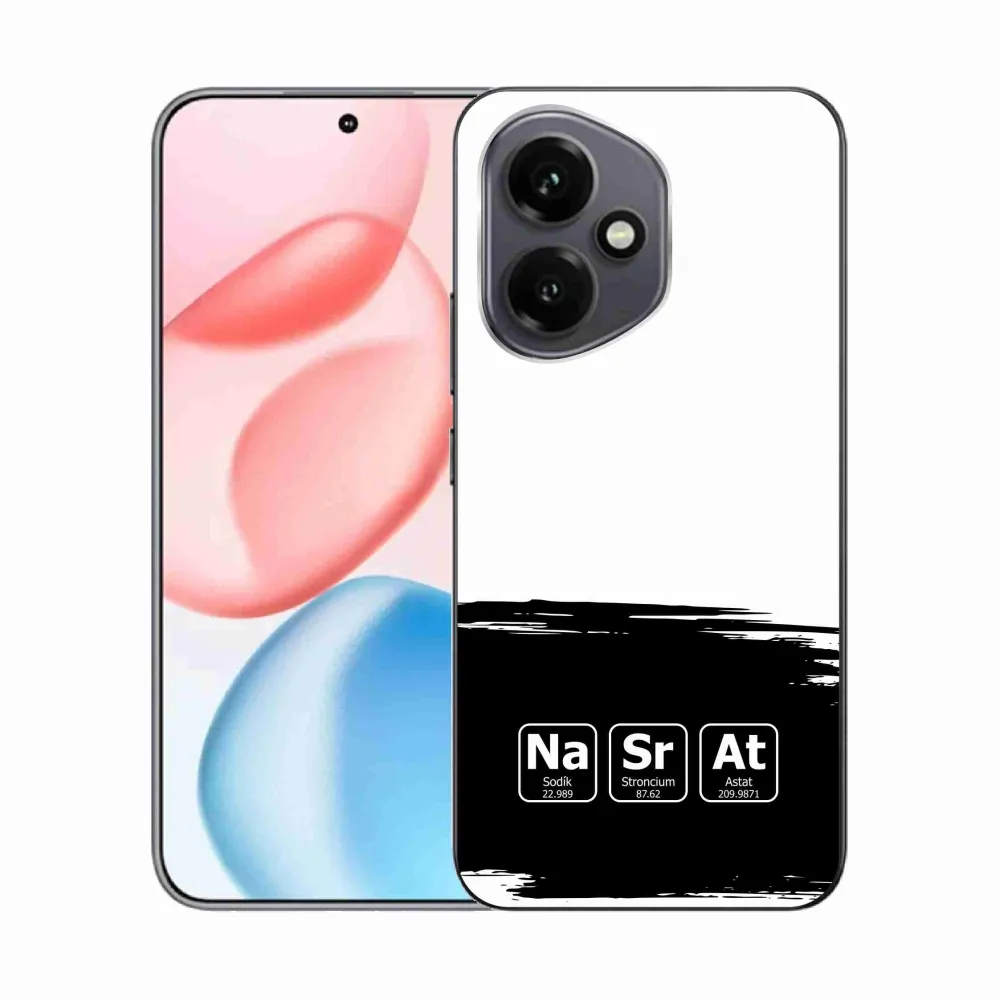 Rugalmas zselés tok mmCase kép a Honor 400-on - kémiai elemek fekete és fehér háttérrel