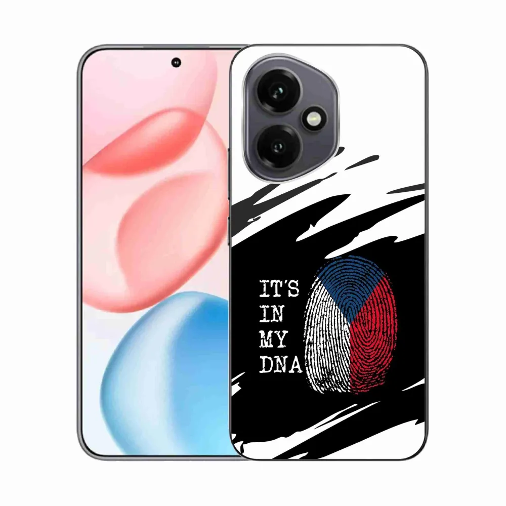 Rugalmas zselés tok mmCase kép a Honor 400 - zászló ujjlenyomat fekete és fehér háttérrel
