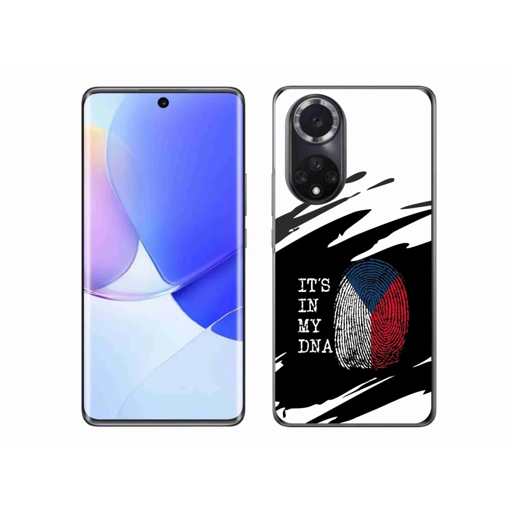 Zselés borító mmCase a Honor 50 számára - zászlós ujjlenyomat fekete és fehér háttérrel