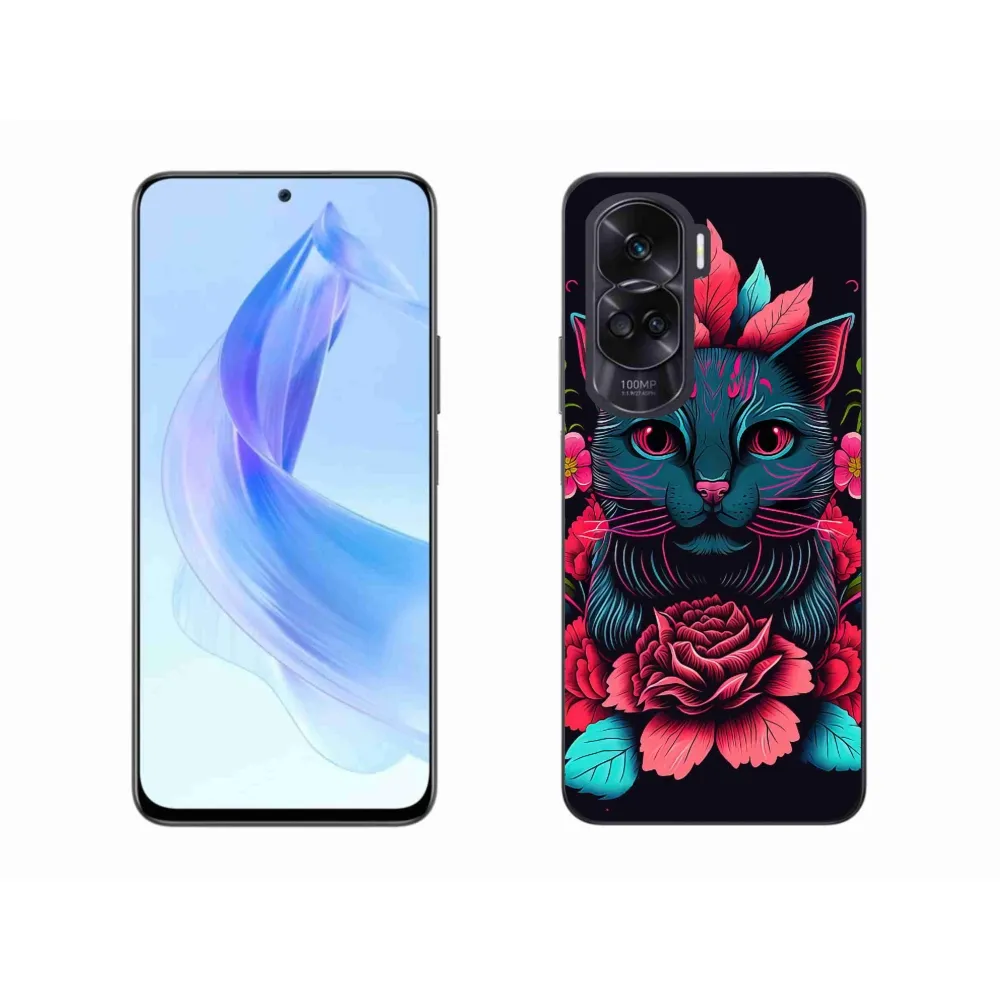 Rugalmas zselés tok mmCase a Honor 90 Lite képével - virágok és macska