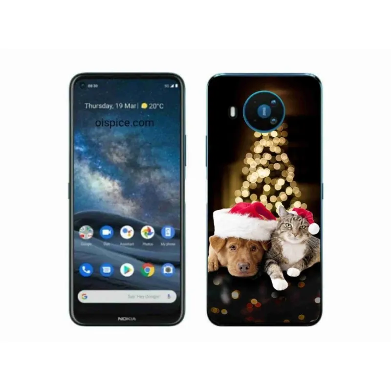 Zselés borító mmCase a Nokia 8.3 5G készülékhez - Karácsonyi kutya és macska