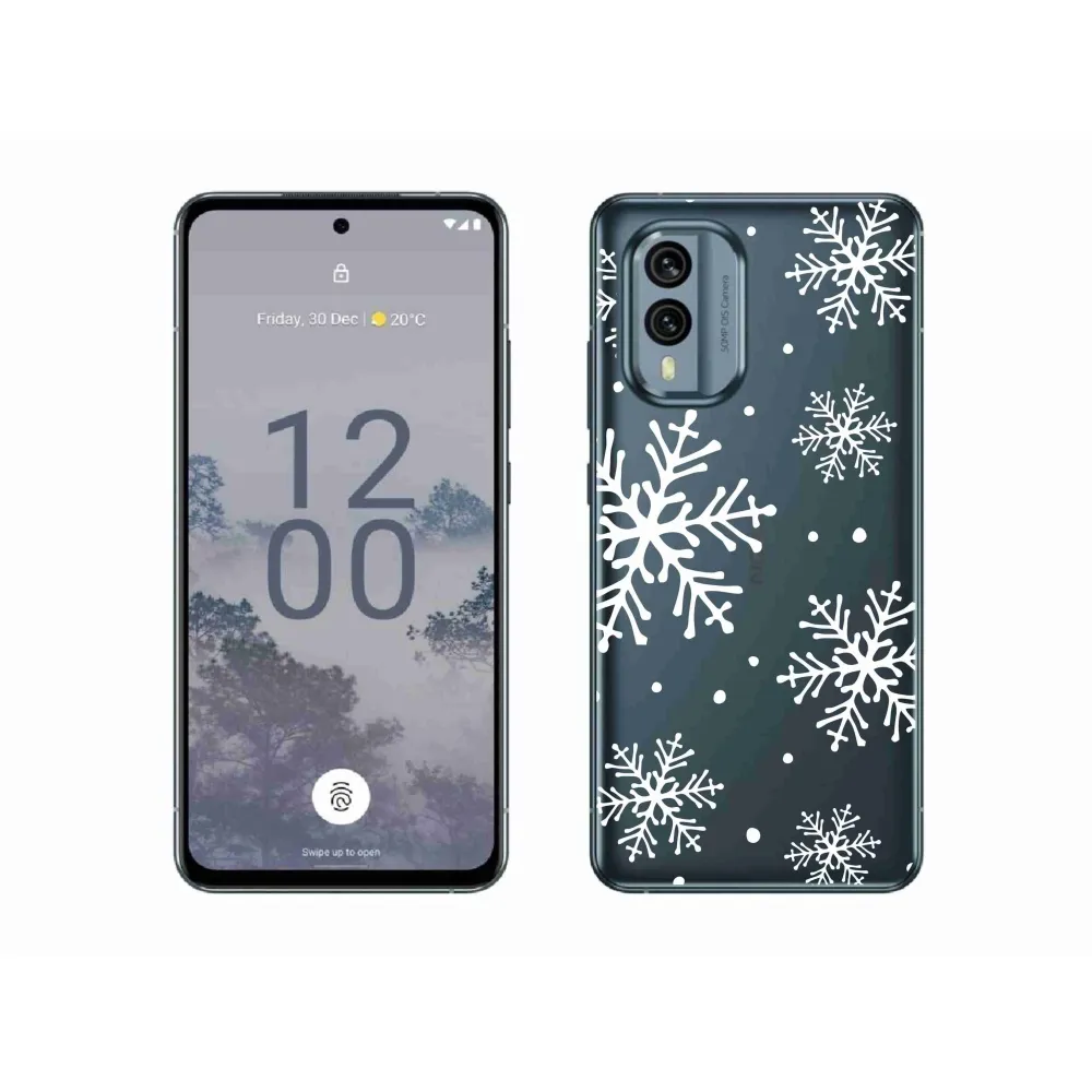 Rugalmas zselés tok mmCase a Nokia X30 5G képével - fehér hópelyhek átlátszó háttéren