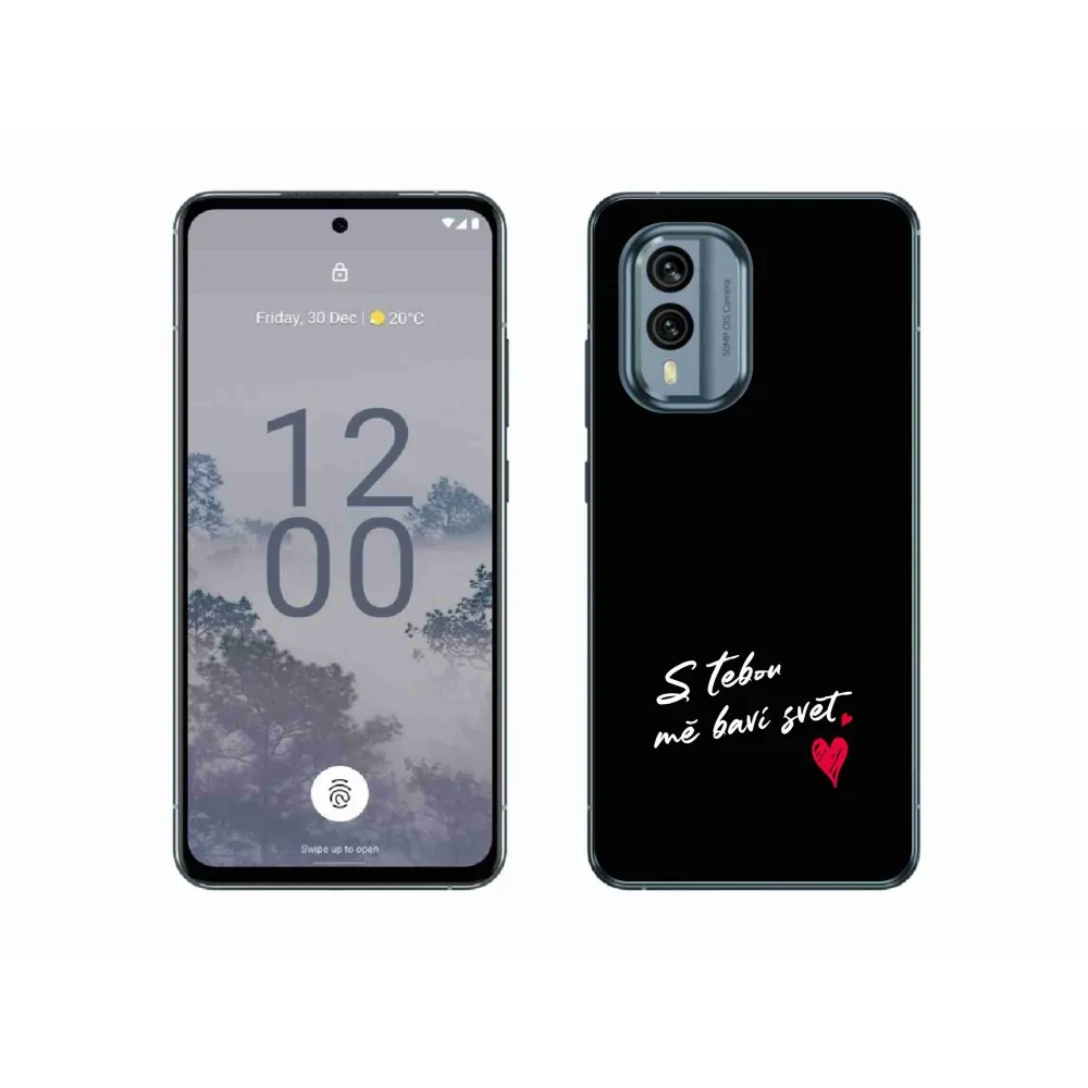 Rugalmas zselés tok mmCase a Nokia X30 5G képével - szerelmes szöveg 1 fekete háttérrel