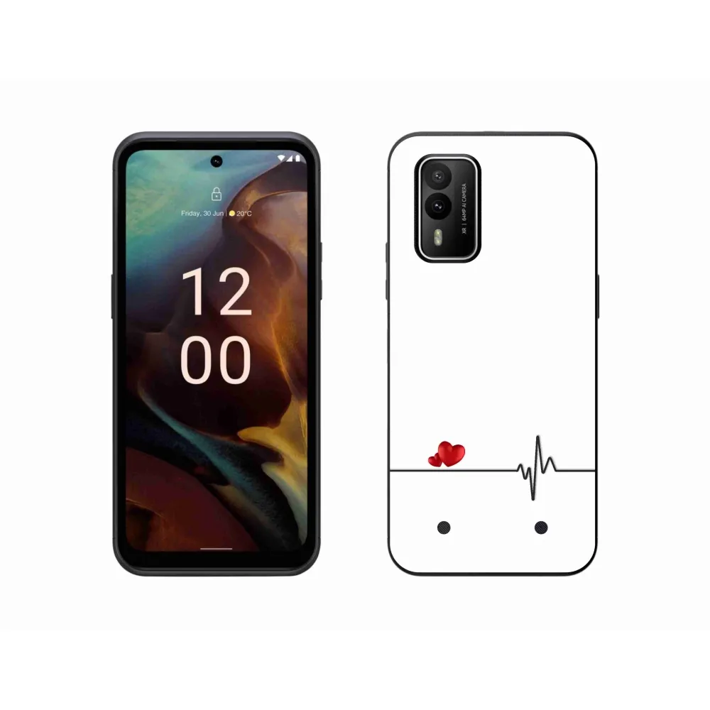 Rugalmas zselés tok mmCase a Nokia XR21 képével - szív és szívverés fehér háttérrel