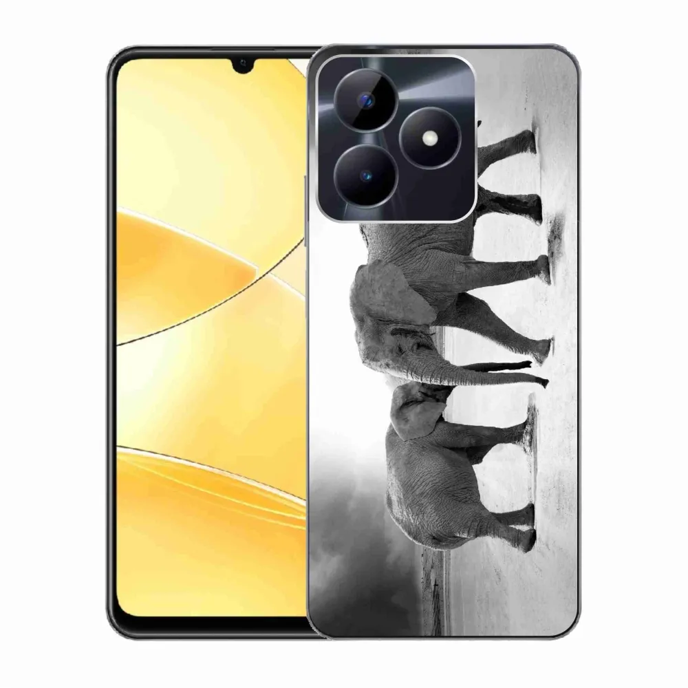 Zselés borító mmCase a Realme C51/C53 készülékhez - fekete és fehér elefántok