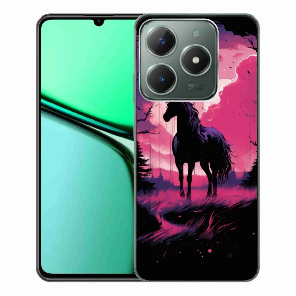 Zselés borító mmCase a Realme C61 készülékhez - fekete rajzfilm ló 1