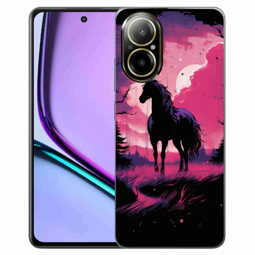 Rugalmas zselés tok mmCase képpel a Realme C67-hez - fekete rajzfilm ló 1