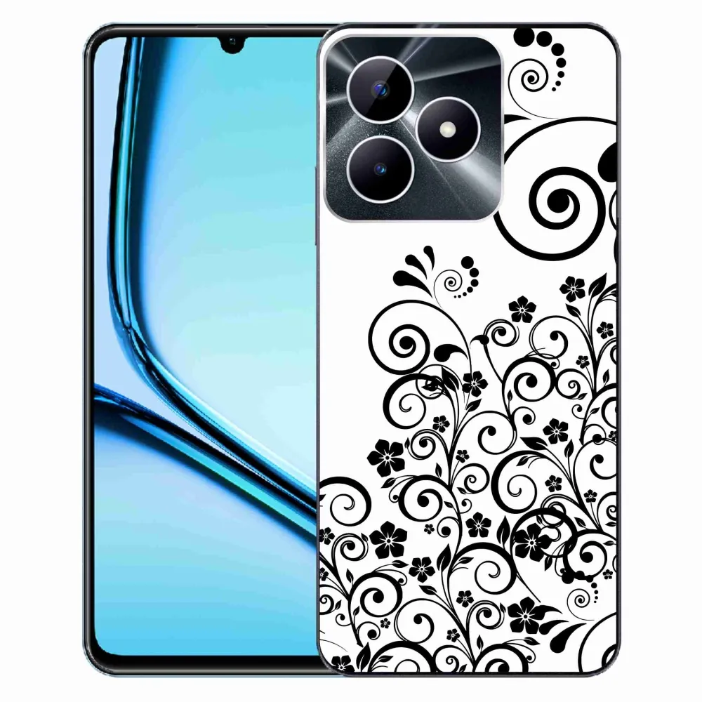 Rugalmas zselés borító mmCase képzeletbeli Realme Note 50 - fekete-fehér virágmintás tokkal