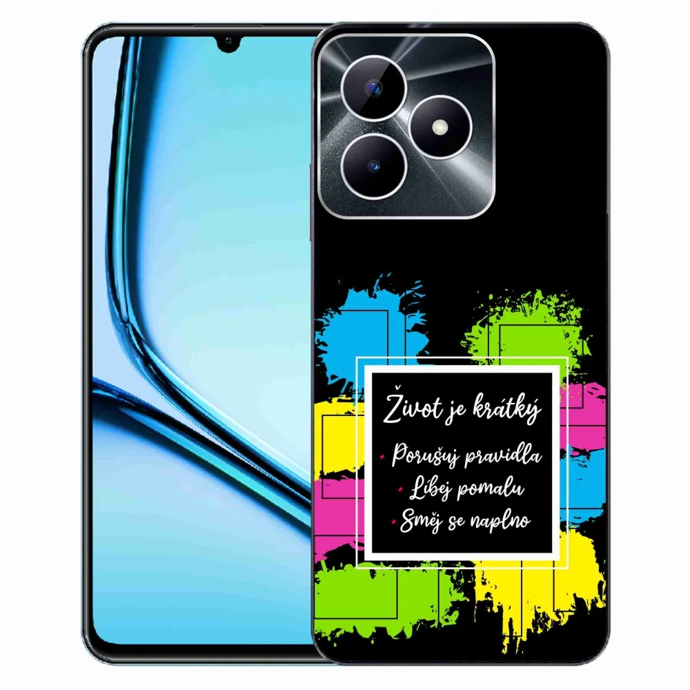 Rugalmas zselés tok mmCase a Realme Note 50 képével - idézet 5 fekete háttérrel