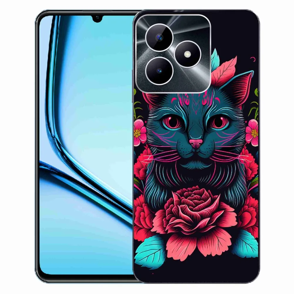 Rugalmas zselés borító mmCase a Realme Note 50 képével - virágok és macska