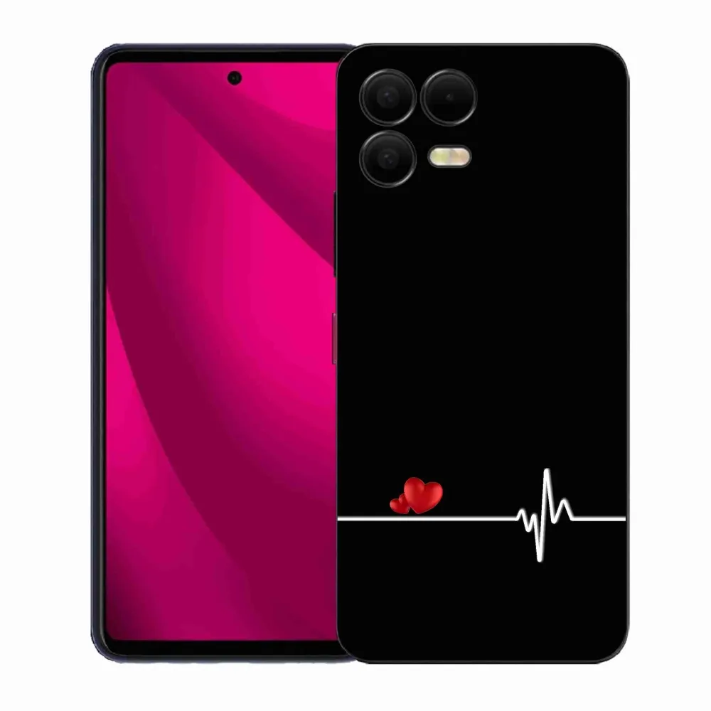 Rugalmas zselés tok mmCase a T-Mobile T Phone 3 Pro képével - szív és szívverés fekete háttérrel