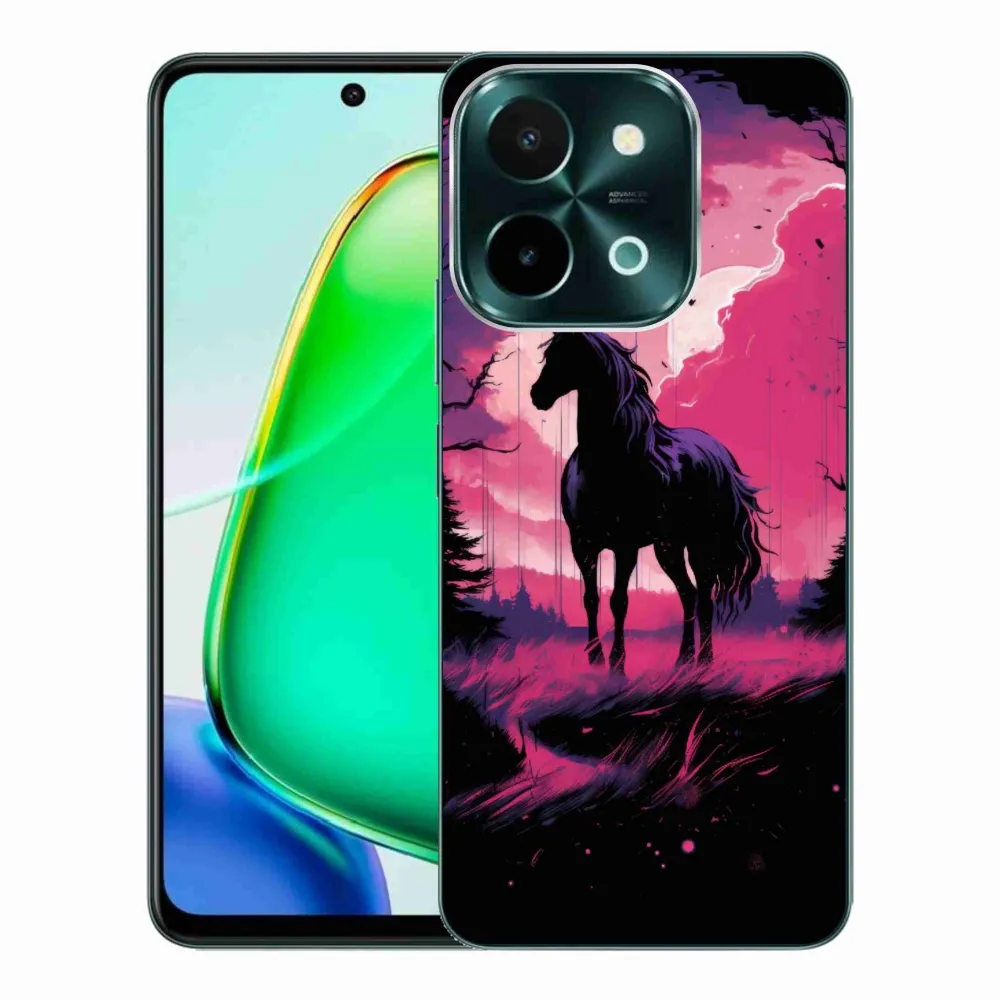 Rugalmas zselés tok mmCase képpel a Vivo Y28-hoz - fekete rajzfilm ló 1