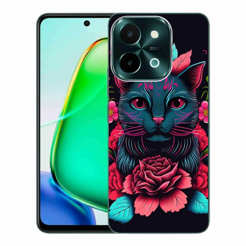 Rugalmas zselés tok mmCase képpel a Vivo Y28-hoz - virágok és macska
