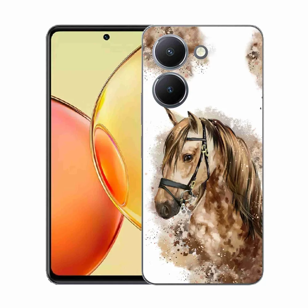 Rugalmas zselés tok mmCase képpel a Vivo Y36-hoz - barna rajzfilmes ló