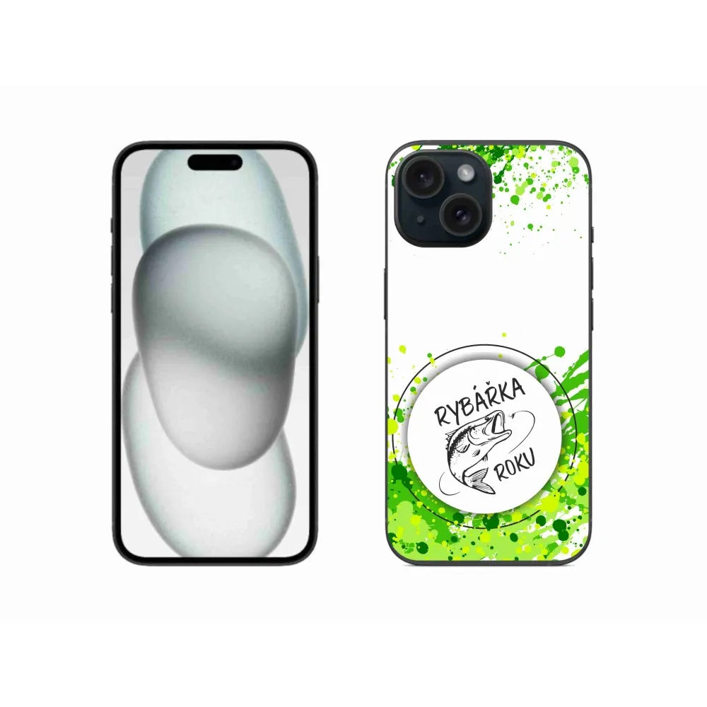 Rugalmas zselés tok mmCase képpel iPhone 15-hez - Az év halásznője fehér háttérrel