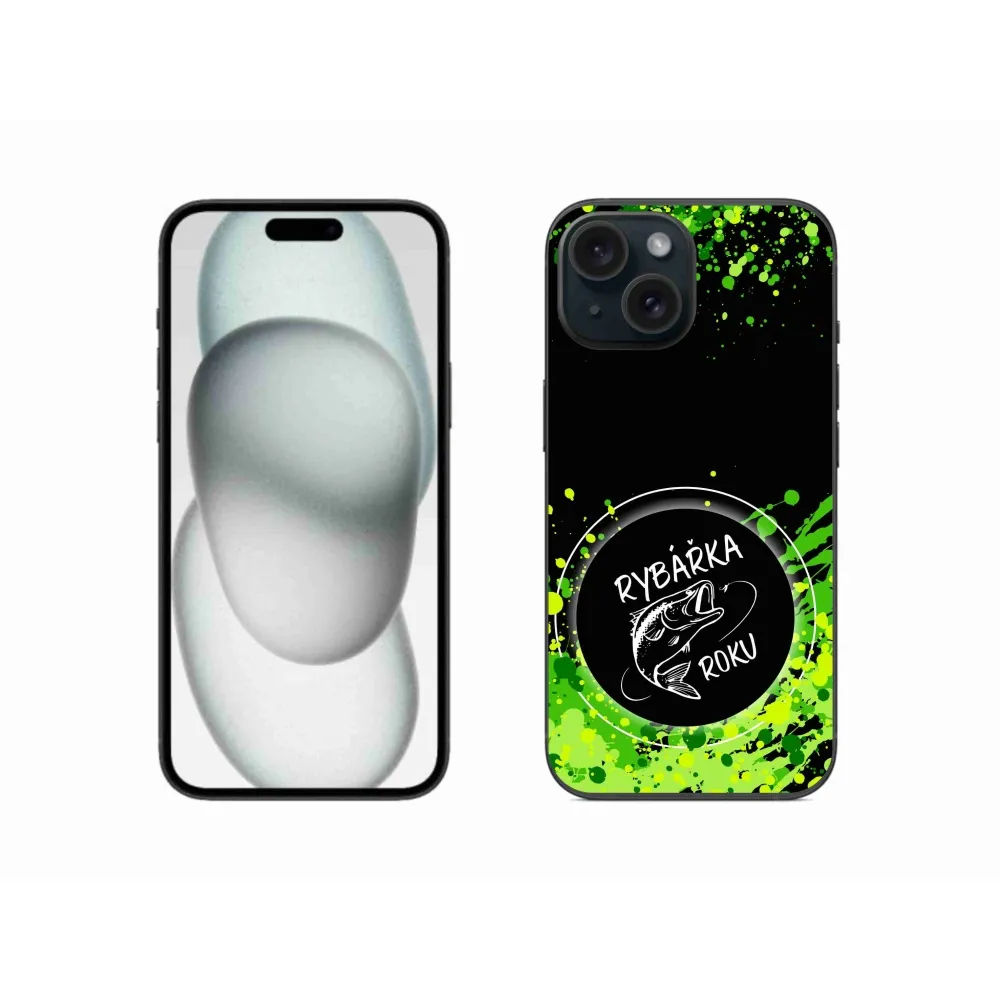 Zselés borító mmCase iPhone 15 készülékhez - Az év halászának fekete háttere