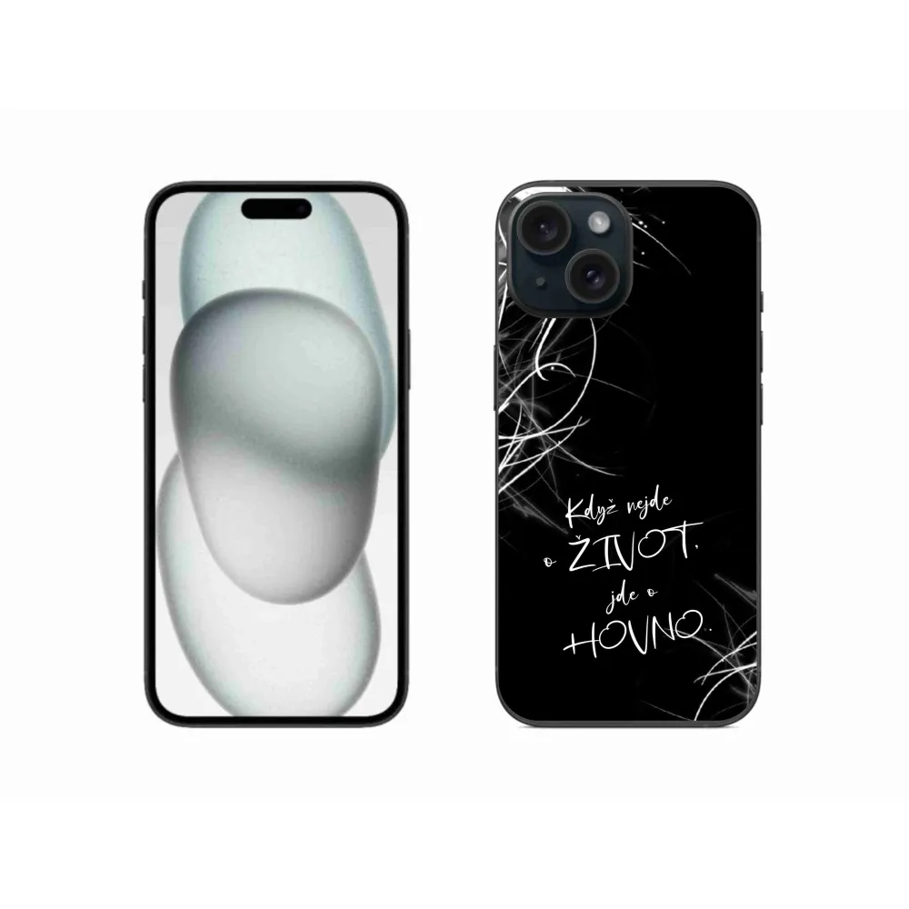 Rugalmas zselés tok mmCase kép iPhone 15 - vicces szöveg 16 fekete háttérrel