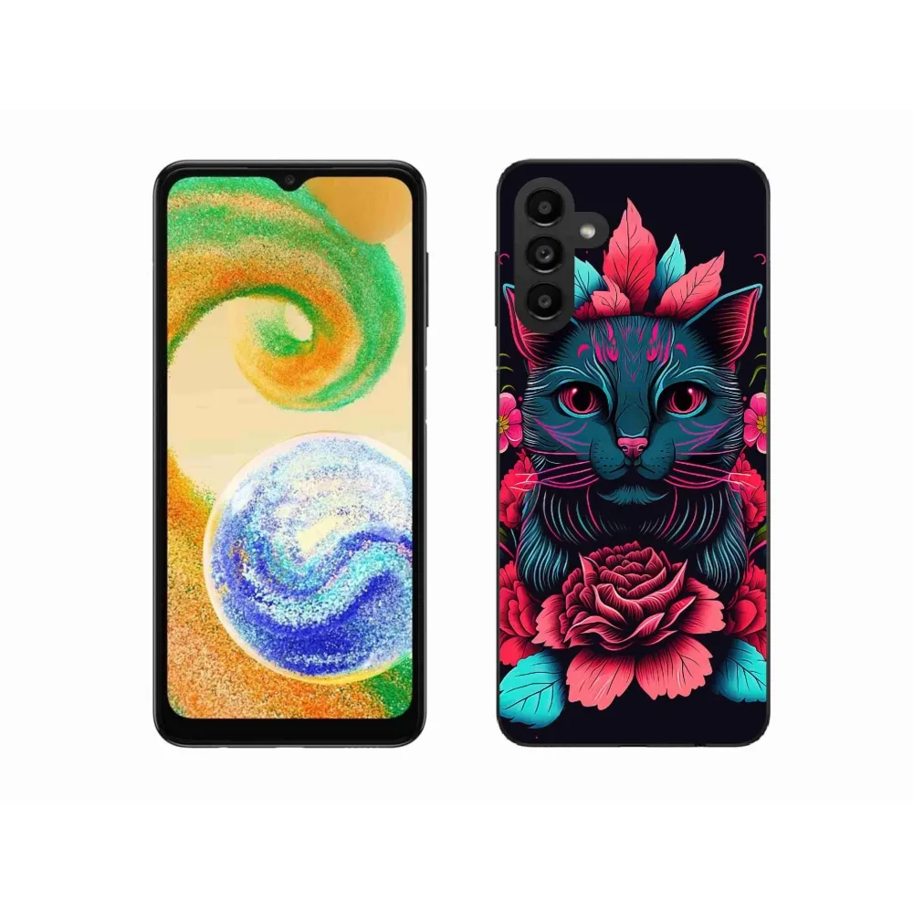 Rugalmas zselés tok mmCase kép Samsung Galaxy A04s (164.7x76.7x9.1mm) - virágok és macska