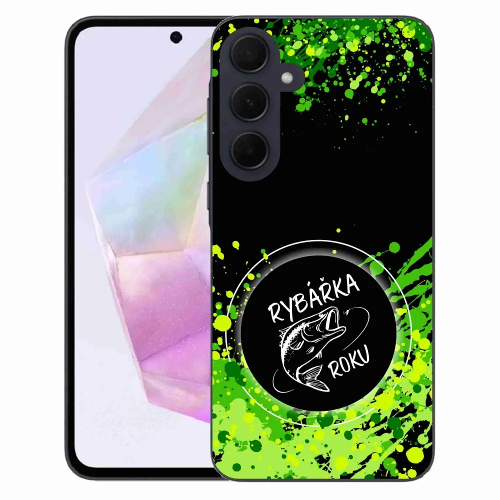 Zselés borító mmCase Samsung Galaxy A35 5G - Az év horgásza fekete háttérrel