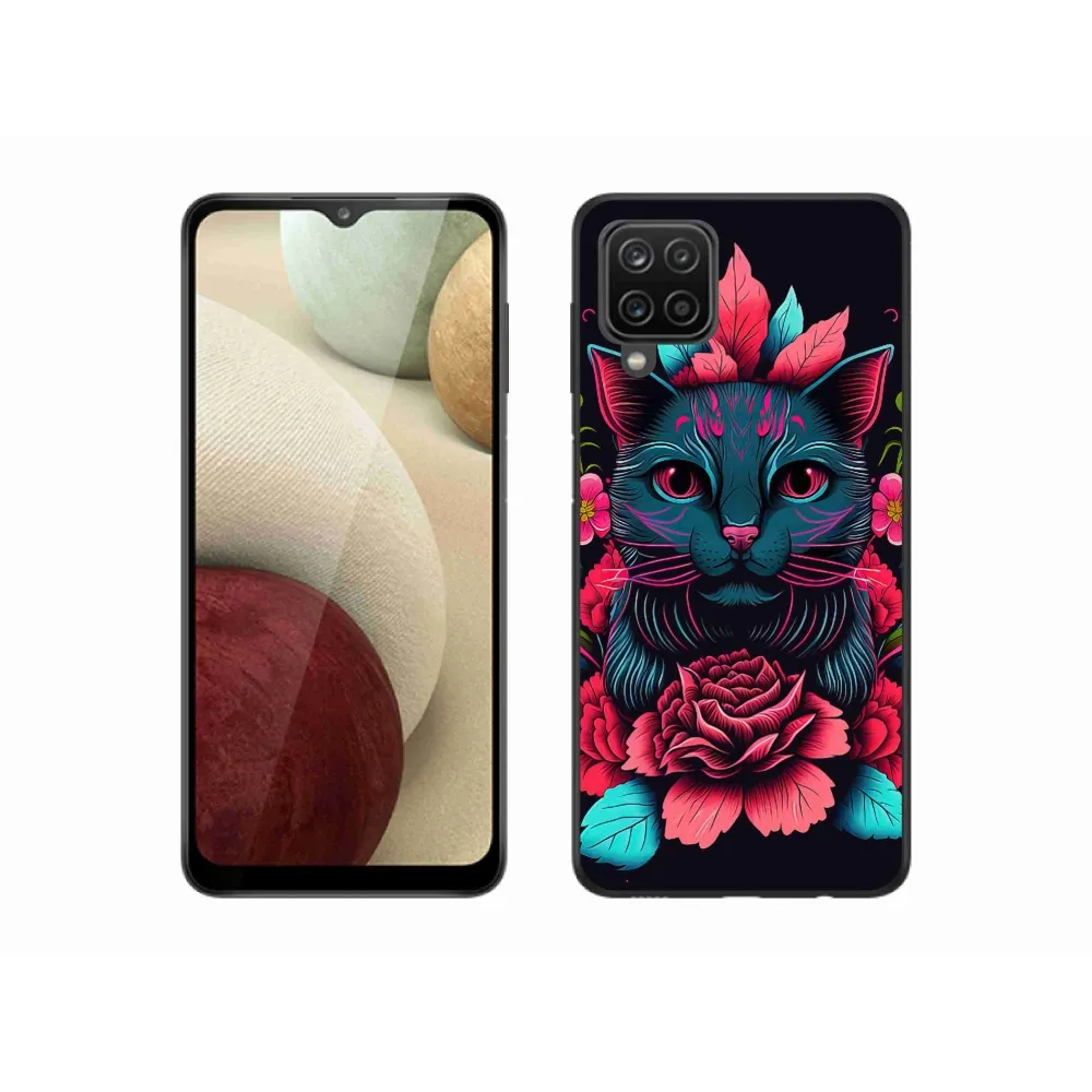 Rugalmas zselés tok mmCase kép Samsung Galaxy M12 - virágok és macska