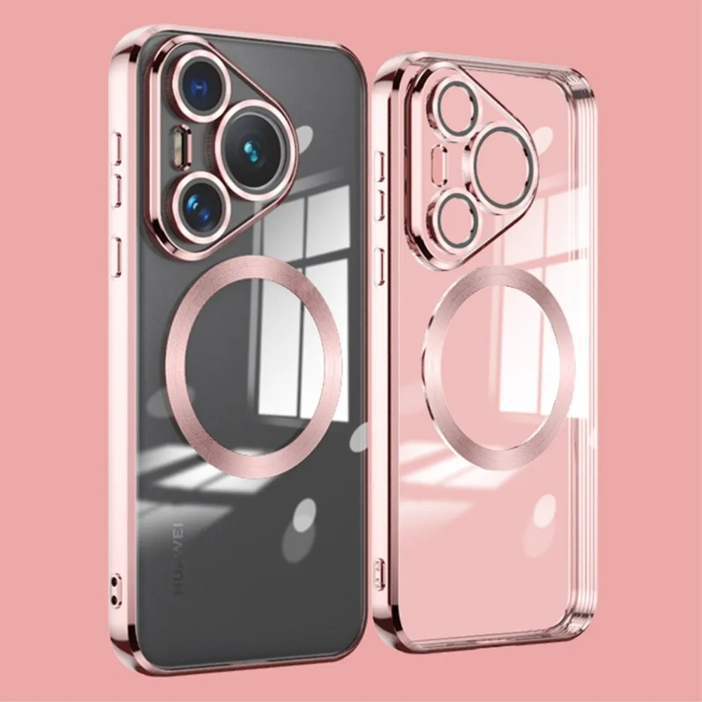 Rózsaarany zselés borítás kameravédelemmel és MagSafe támogatással a Huawei Pura 70 készülékhez
