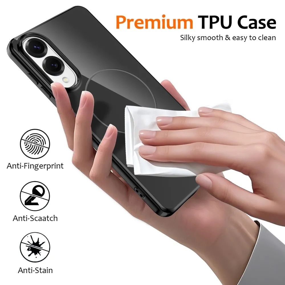 ✅【Kiváló minőségű anyag】 MagSafe-fel ellátott hordzselés tok Samsung Galaxy S25 Edge készülékhez, fekete színben, prémium TPU anyagból készült. Puha, tartós és fényes felülettel rendelkezik, amely megakadályozza a vízfoltokat