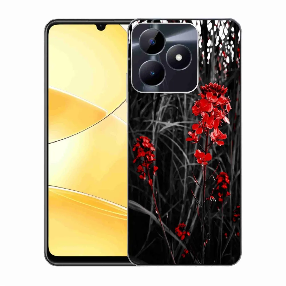 Rugalmas zselés tok mmCase képpel a Realme C51/C53 készülékhez - piros növény