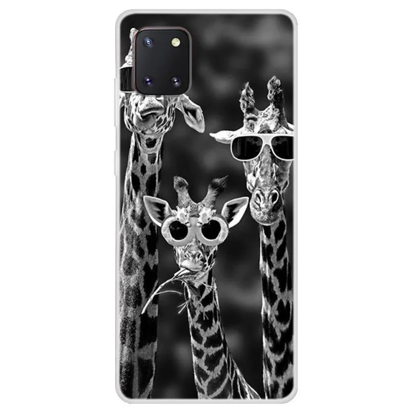 Zselés tok Samsung Galaxy Note 10 Lite készülékhez - zsiráfok szemüveggel