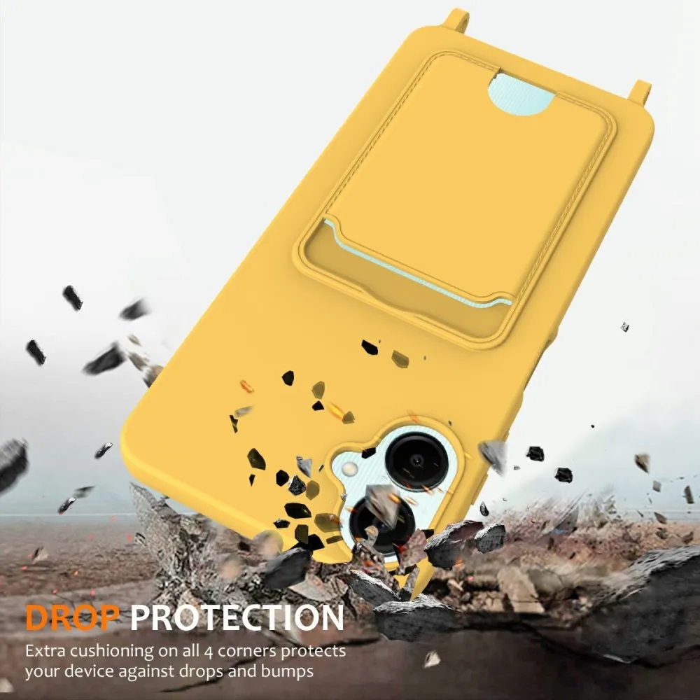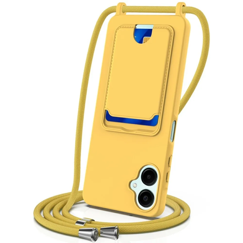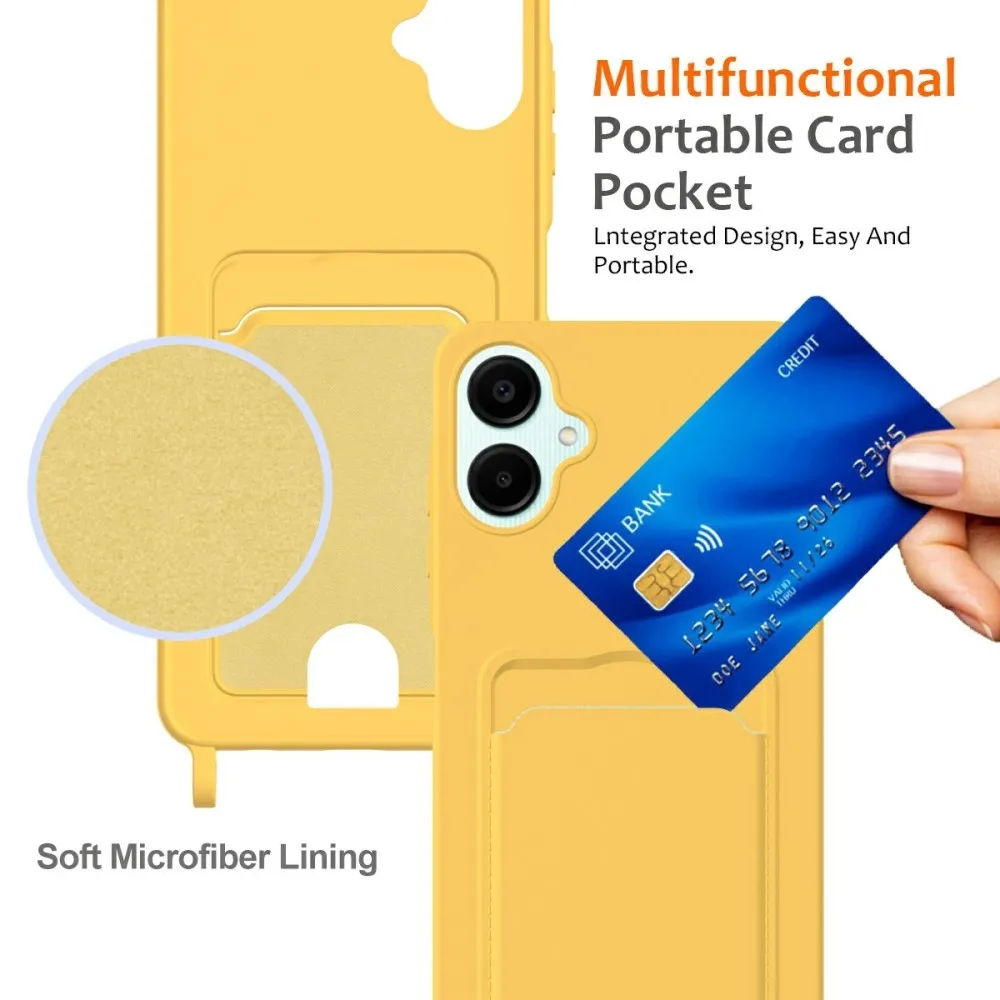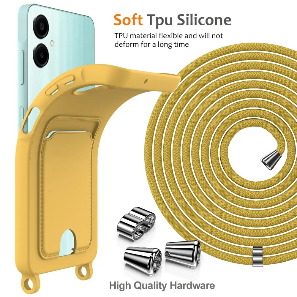 ✅【Szuperpuha anyag】A Samsung Galaxy A06 4G készülékhez készült, sárga színű, kártyatartó géltok nyakpánttal, ultrapuha folyékony szilikonból készült, kellemes tapintású, miközben ellenáll az ujjlenyomatoknak, így a telefon tiszta és elegáns megjelenésű.